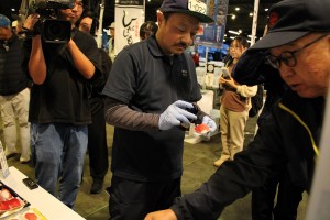 そんなまぐろの日を控えた10月9日、仙台市場内の特設会場で、「三陸塩竃ひがしもの」の消費拡大イベントを開催しました。